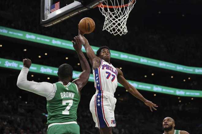 次節(jié)比賽,布朗外線三分命中,引領(lǐng)凱爾特人前3分半鐘取得39-34領(lǐng)先優(yōu)勢,76人連得5分追平比分。雙方隨后纏斗至凱爾特人45-43領(lǐng)先,76人一波12-2攻勢反超8分,凱爾特人單節(jié)23-31輸?shù)?分,上半場結(jié)束凱爾特人51-57被76人反超6分。前兩節(jié)比賽,埃奇庫姆16分與馬克西22分,恩比德6中1僅得到4分,凱爾特人沒有球員得分上雙。