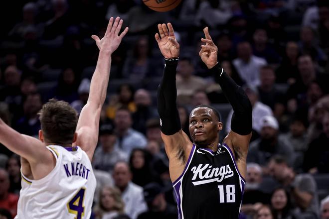 雖然加盟國王隊以來,威少的整體表現(xiàn)比較符合底薪合同。但威少的性格我們都是知道的,對上讓他憋屈的老東家,狀態(tài)都是拉滿的。今天開局三分5投4中,準(zhǔn)到離譜。更是在球隊分差被拉開的時候,率隊轟出一波13-2完成反超。甚至比賽后半段也毫不手軟,全場威少替補(bǔ)出戰(zhàn)打了27分鐘,12投6中,三分6投4中得到18分6籃板6助攻。這是威少加盟國王隊以來,打得最好的一場比賽。本以為這是一場‘威少復(fù)仇記’,是一場暮年球星讓人淚目的獨(dú)角戲時,這一切都被毀掉了。而毀掉威少表演的,是里夫斯。在詹姆斯和東契奇全部缺席的情況下,里夫斯確實(shí)是坐實(shí)了絕對核心的身份。